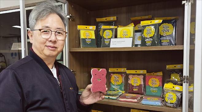 전환점은 2년 차에 개발한 ‘무기 항균 수세미’였다. 정 대표는 “수세미는 한두 번 쓰고 버리는 제품이 아니라 오래 사용하는 만큼 항균 성능이 지속되는 것이 중요하다”고 말했다. 유기 항균제는 물에 닿으면 성분이 빠져나가 항균력이 떨어질 수 있지만 무기 항균제는 물과 열에도 쉽게 변하지 않아 효과가 오래 유지된다. 물에 지속적으로 노출되는 수세미의 특성상 무기 항균제가 더 적합하다는 얘기다. 정 대표는 “3M을 포함한 대부분의 수세미 업체가 유기 항균제를 사용하는 데 비해 우리는 무기 항균제를 적용해 차별화를 꾀했다”고 설명했다.