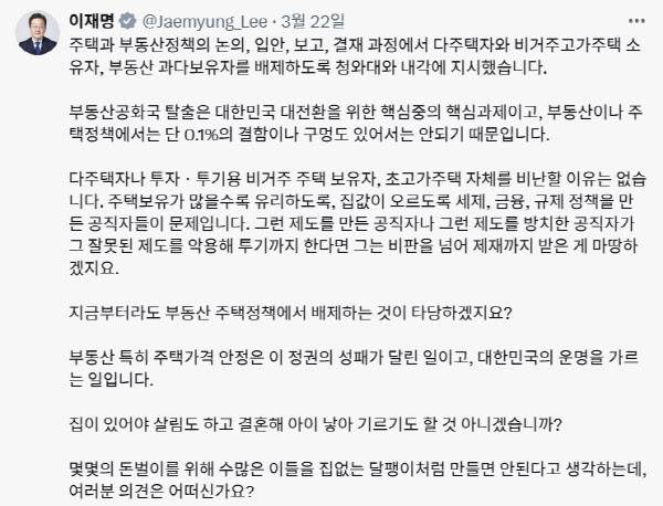 "업무 배제" 지시한 李…부동산 정책 담당 다주택자 누구