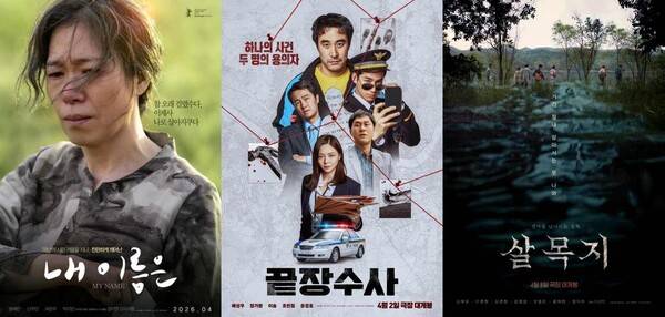 배성우 주연의 범죄 수사극 '끝장수사'부터 실화 괴담을 바탕으로 MZ 배우들이 의기투합한 공포물 '살목지', 그리고 베를린이 먼저 주목한 감동의 휴먼 드라마 '내 이름은'까지 장르도 색깔도 제각각이다. 세 작품은 각자 개성 다른 매력의 키워드를 던지며 관객들을 유혹한다. 베테랑 배우들의 탄탄한 연기 내공과 패기 넘치는 신예들의 에너지가 맞붙는 4월 라인업은 '왕과 사는 남자'의 흥행으로 훈풍 부는 극장가에 새로운 활력을 불어넣으며 한국 영화의 저력을 다시 한번 증명할 것으로 기대를 모은다.