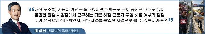노조법 제43조는 ‘사용자는 쟁의행위 기간 중 그 쟁의행위로 중단된 업무의 수행을 위하여 당해 사업과 관계없는 자를 채용 또는 대체할 수 없으며, 그러한 업무를 도급 또는 하도급 줄 수 없다’고 규정하고 있다.