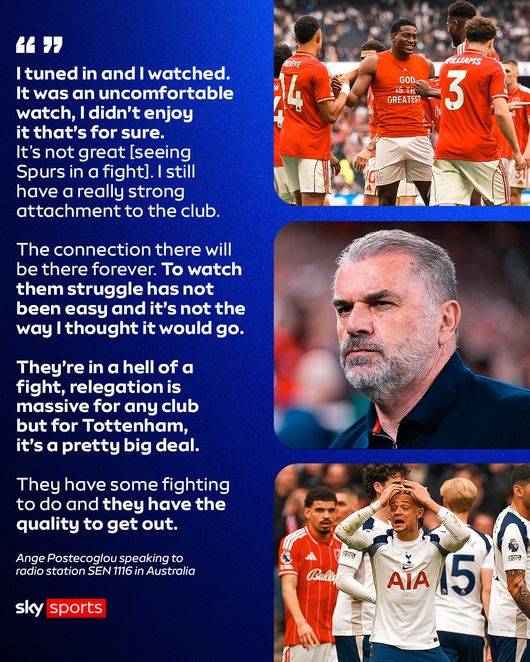 포스테코글루 감독은 호주 'SEN 1116'과 인터뷰에서 "좋지 않다. 여전히 토트넘에 강한 애정을 가지고 있다. 2년 동안 함께했다. 쉽지 않은 시간이었지만, 많은 것을 쏟아부었다. 마지막에서 두 번째 경기에서 유럽 대회 우승을 했던 건 정말 대단한 순간이었다. 그 연결은 평생 이어질 것"이라고 말했다.