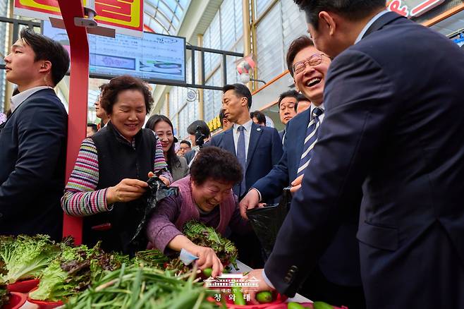 | ▲ 이재명 대통령이 26일 오후 경남 진주시에 위치한 진주중앙시장을 방문해 시민과 상인들을 만났다. 2026.3.26 |