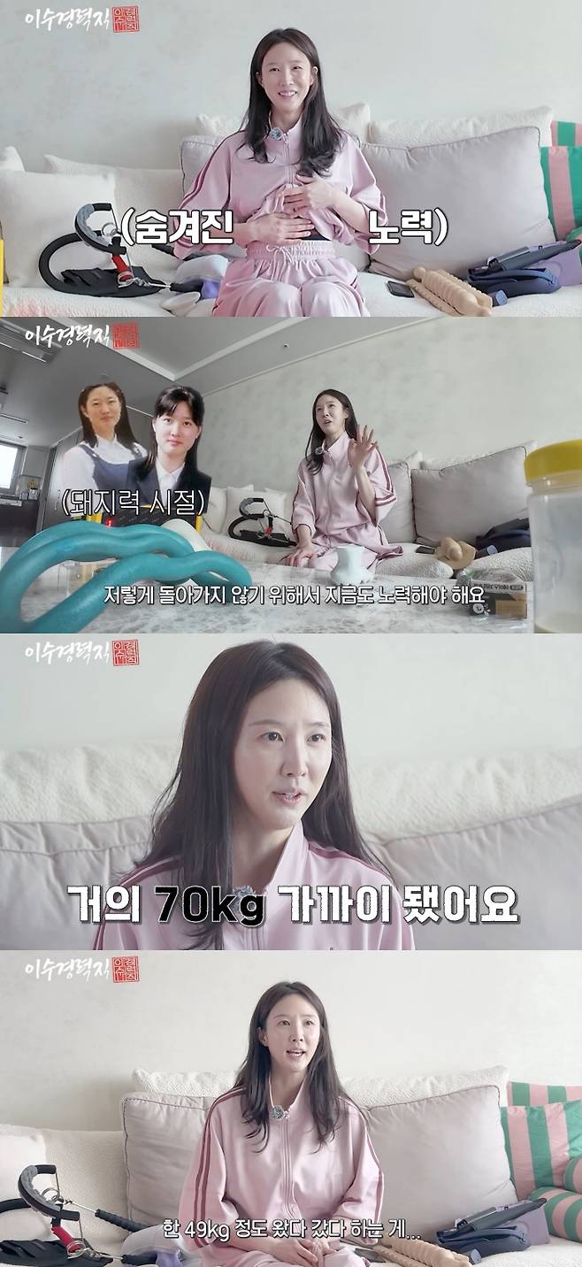 이수경은 관리를 열심히 하는 이유에 대해 "늘 노력해야지 과거처럼 돌아가지 않는다. 과거에 돼지력이 있다"고 고백했다. 이와 함께 통통했던 고등학교 시절 사진이 공개되자 "저렇게 돌아가지 않기 위해 지금도 노력한다. 지금도 조금만 방심한다 싶으면 체지방률이 확 올라간다"며 "고등학교 때 70kg 가까이 됐다"고 밝혔다.