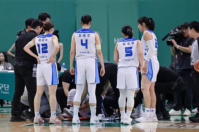 패배보다 큰 타격도 있었다. 이민지가 부상을 입은 것. 이민지는 경기 종료 4분여 전 드리블 과정에서 오른쪽 무릎에 충격을 입었고, 곧바로 변하정과 교체됐다. 이민지는 이후 다시 코트로 돌아오지 못했다.