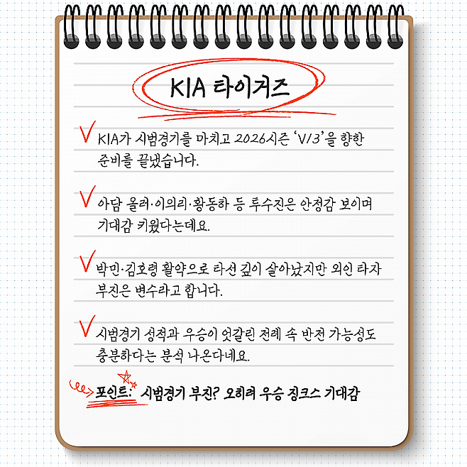 ▶ KIA가 시범경기를 마치고 2026시즌 ‘V13’을 향한 준비를 끝냈습니다.
