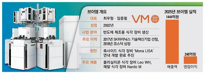 지난해부터 시작된 '반도체 슈퍼사이클'로 영업 실적도 반등했다. 브이엠은 지난해 매출액 1444억원, 영업이익 246억원을 기록한 데 이어 올해 매출 2500억원 달성을 정조준하고 있다. 브이엠은 지난 24일에도 SK하이닉스와 815억원 규모 반도체 장비 공급 계약을 체결했다고 공시했다.