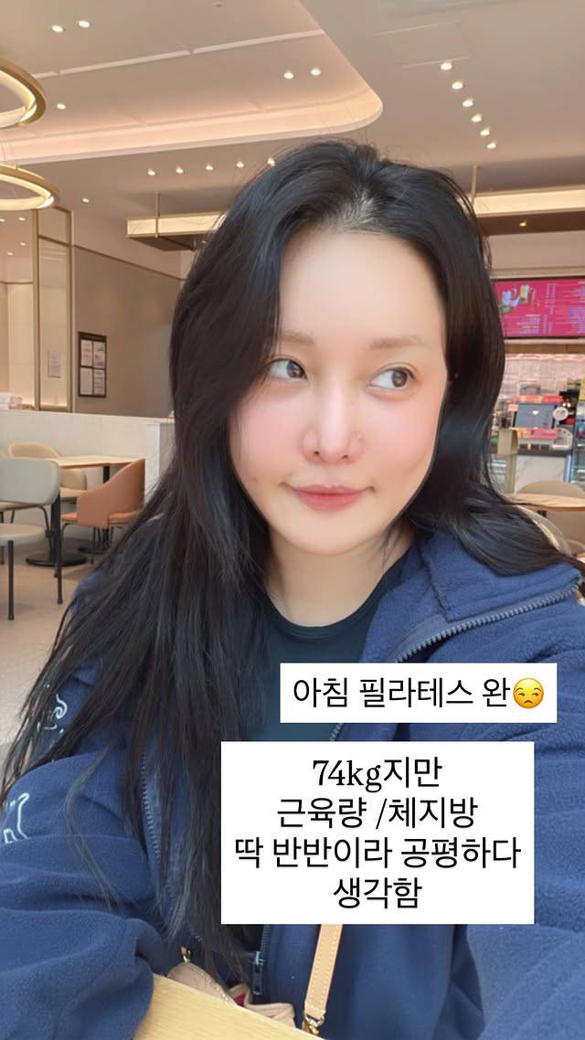 26일 랄랄은 자신의 SNS 계정에 "아침 필라테스 완료. 현재 74kg이지만 근육량과 체지방이 딱 반반이라 나름 공평하다고 생각한다"는 글과 함께 사진 한 장을 게재했다.