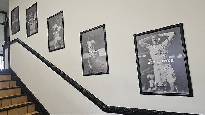 클럽하우스 1층에서 2층으로 올라가는 계단 맨 처음에 MK 돈스 유니폼을 입은 알리의 액자가 걸려 있다.