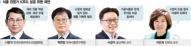26일 국내 식품 전문가들은 K푸드의 성공적인 글로벌 시장 안착의 최우선 과제로 자생력 있는 경쟁력 확보를 꼽았다. 나명석 한국프랜차이즈산업협회장은 "K컬처가 K푸드에 대한 관심의 문을 열어줬다면, 실제 재구매를 만드는 힘은 맛의 완성도와 운영 시스템, 위생·품질의 안정성이 필요하다"고 평가했다.