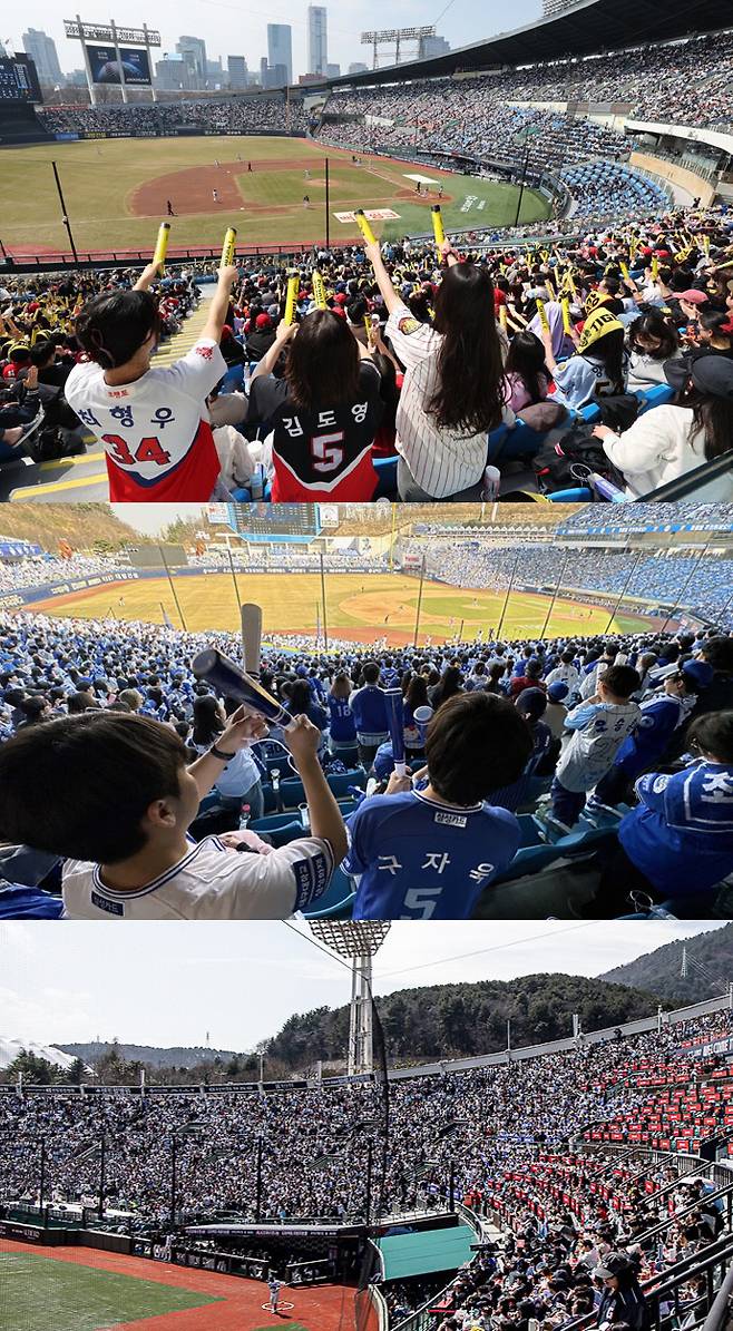 일단 2026시즌 개막을 앞두고 진행된 시범 경기는 역대 최다 관중을 기록하며 쾌조의 분위기를 이어갔다. 총 60경기에 총 44만247명 관중이 입장했다. 지난해 42경기 32만1763명이 몰린 것에 비해 11만8484명이 늘었다. 시범 경기 마지막 시리즈였던 지난 21일과 22일 주말 경기에는 이틀 연속 일일 관중 8만 명을 돌파했다.