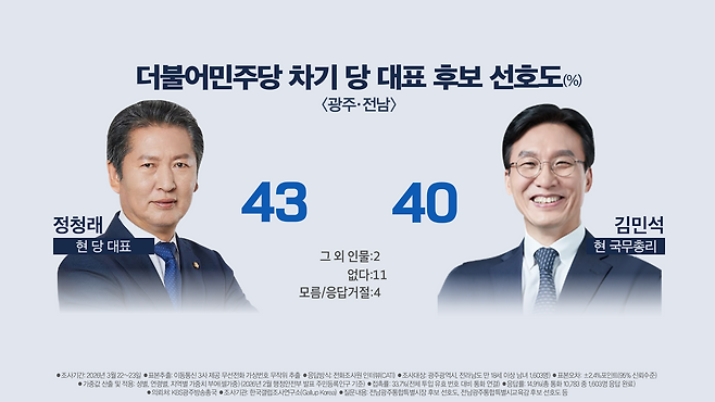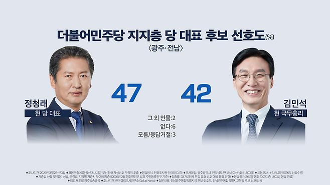 [KBS 광주]■민주당 차기 당권 주자 선호도 정청래 현 대표, 김민석 총리 '접전'