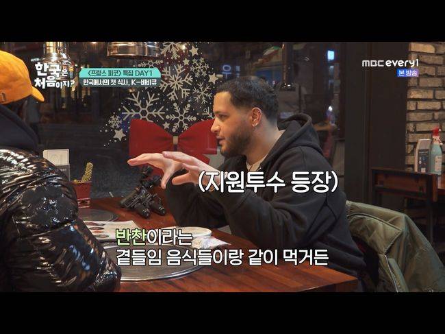 다니엘은 “파코는 한국말을 잘하는 거지만, 한국에서 고기를 시켜 본 적은 없을 테니 어려울 것이다”라며 걱정했으나, 파코는 친구들에게 바로 “고기를 하나만 주문하면 안 된다. 2인분부터 가능하더라”라며 불어로 설명 후 바로 한국말로 고기와 사이드 메뉴를 주문했다./osen_jin0310@osen.co.kr