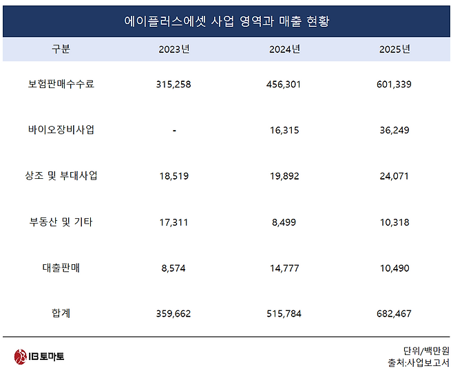 에이플러스에셋 측은 <IB토마토>에 "보험판매 중심의 본업 경쟁력을 유지하면서 계열사와 연계한 토탈 라이프케어 기반 사업으로 수익 구조의 다변화를 추진하고 있다"라며 "보험영업 과정에서 확보한 고객 접점을 바탕으로 금융, 헬스케어, 실버케어 등 생활 밀착형 서비스를 결합한 통합 서비스 모델을 모색 중"이라고 했다.