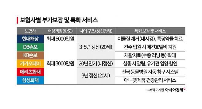 나이도 중요한 변수다. 카카오는 생후 초기 가입을 전제로 최대 20년 만기 구조를 내세워 사실상 비갱신형에 가까운 형태를 취한다. 이에 반해 메리츠·KB·DB·삼성·현대해상은 3년 또는 5년 단위 갱신형이다. 만 20세까지 보장이 이어지지만 연령이 올라갈수록 보험료가 상승하는 구조다. 가입 문턱은 넓지만 장기 비용 측면에서는 변동성이 존재한다.