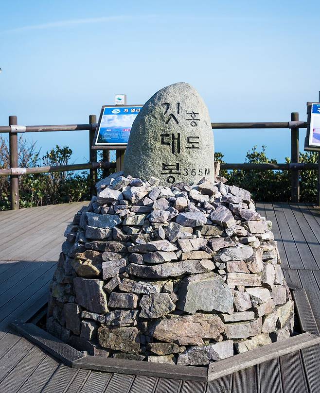 일행은 곧장 산행에 나섰다. 몸은 천근만근 무거웠고 멀미의 여파는 여전히 남아 있었지만 홍도에 온 중요한 목적 중 하나를 포기할 수는 없었다. 깃대봉의 높이는 368m, 그러나 숫자만으로는 가늠할 수 없는 100대 명산의 아우라를 품고 있다.