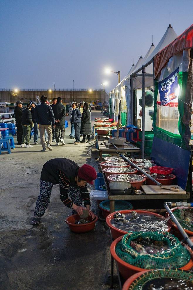 다음 순서는 해녀포차다. 그녀는 6호 포차를 권했다. "가장 연세가 많은 해녀세요. 가서 좀 팔아 드리세요." 섬을 찾은 관광객의 반 이상은 선착장에 내려와 있는 듯했다. 역시나 홍도 밤의 키워드는 해녀 포차임이 분명하다.