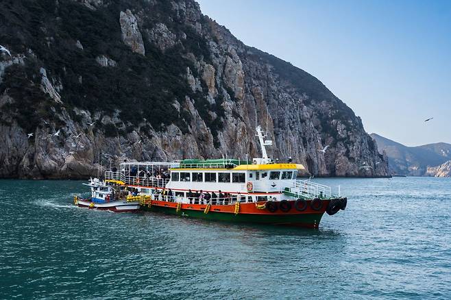 아침 7시30분, 두 척의 유람선이 선착장을 출발했다. '남해의 소금강'이라 불리는 홍도의 해안에는 수없이 많은 기암절벽이 산재해 있다. 모습도 색도 제각각, 바다에서 봐야 제대로 감상할 수 있으니 유람선 투어는 필수 코스다. 게다가 스치는 곳마다 해설사의 구수한 설명도 곁들여진다. 전설과 담긴 이야기를 듣다 보면 섬을 한 바퀴 도는 두 시간이야말로 금세 지나가기 마련이다.