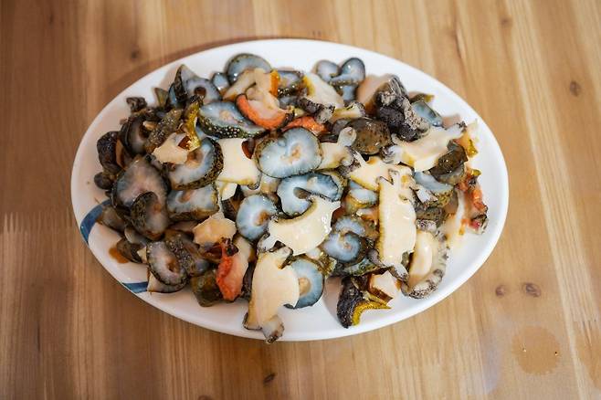 6호 할머니는 전복, 해삼에 소라까지 껍질을 부숴 썰어 내기 시작했다. 투박한 손으로 완성된 모둠 해물 한 접시는 3만원이다. 물론 바다향을 즐기는 것만으로도 충분했지만 홍도의 자랑거리, 토종홍합을 지나칠 수는 없었기에 탕으로 1만원어치만 끓여 달라 부탁드렸다. 뽀얗게 우러난 홍합 국물은 역시나 최고의 안주다. 소주를 즉시 중화시키는 막강한 해장력을 가졌으니 말이다.