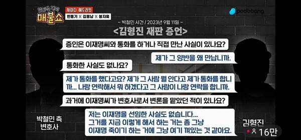 그런데 검찰과 경찰이 각각 대통령 선거에 출마한 유력 후보나 낙선한 유력 정치인 이재명 옭아매기에 진심이었다는 점 말고 또하나 의문점이 있다. 봉지욱 기자가 26일 '매불쇼'에서 얘기했듯, 검찰은 어떤 경로로 몇 달 뒤 '그알'이 관련 추가 보도를 할 것이라고 알게 됐을까 하는 점이다. 김형진의 마음을 돌리기 위해 '그알'의 추가 보도를 미끼로 던진 셈이었다.