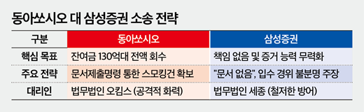 현재 재판의 최대 쟁점은 원고인 동아 측이 신청한 '문서제출명령'의 채택 여부입니다. 동아 측 대리인인 법무법인 오킴스는 삼성증권이 펀드의 위험성을 사전에 인지했는지, 그리고 신용공여 회수 과정에서 부당한 결정이 있었는지를 입증하기 위해 내부 문건 공개를 압박하고 있습니다.