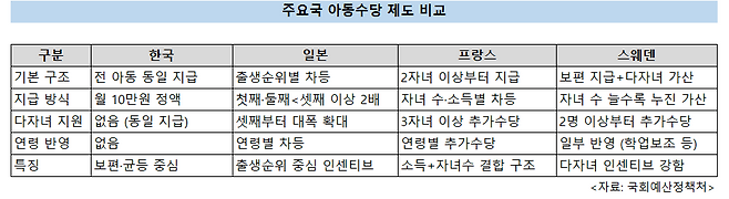 日·佛·스웨덴은 다자녀일수록 수당 확대…출산 유인 설계 뚜렷