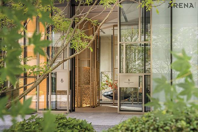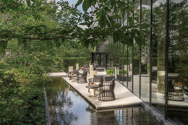 포시즌스 호텔 오사카는 일본에 네 번째로 생긴 포시즌스 호텔이다. 도쿄 마루노우치에 처음 문을 열었고, 잇따라 교토와 도쿄 오테마치 지역에 생겼다. 그리고 최근에 오사카 지점이 개장했다. 2024년 8월 모습을 드러낸 호텔은 과연 어떤 점이 다를까. 포시즌스 호텔은 새로 문을 열 때마다 그 도시의 전통과 문화를 반영한다. 오사카에 위치한 호텔은 도지마 지구에 있어 현대적인 데다, '겐스이'라는 전용 층을 마련해 도심에서 전통적인 료칸을 경험할 수 있도록 했다. 특히 주목할 만한 점은 내로라하는 디자인 스튜디오 세 팀이 합작해 완성했다는 것. 층마다, 공간마다 조금씩 분위기가 달라 이동하고 머무는 순간순간을 보다 특별하게 만들어준다. 먼저 포시즌스 호텔 오사카에 들어서자마자 느낀 건 산뜻한 환대다. 리셉션과 로비, 올데이 다이닝 레스토랑과 베이커리 등 디자인은 큐리오시티가 맡았다. 수 세기 동안 아시아의 상업 중심지이자 활발한 무역이 이루어진 오사카에서 영감받은 공간은 종이와 석재, 나무 등 자연 소재를 활용해 마치 배를 타고 천천히 항해하는 듯한 느낌이었다. 격자 구조로 겹겹이 쌓고 독특하게 나눈 공간 역시 활기 넘치는 오사카처럼 곳곳을 새롭게 발견하는 경험을 선사했다. 실제로 호텔 꼭대기는 돛을 본뜬 모양으로 만들었다고.