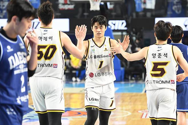 창원 LG는 26일 대구체육관에서 열린 2025~2026 LG전자 프로농구 대구 한국가스공사와의 시즌 마지막 맞대결에서 80-67로 승리했다. 이날 승리로 2위 안양 정관장과의 격차를 2경기로 벌린 LG는 정규리그 우승 매직 넘버도 '4'로 줄였다.