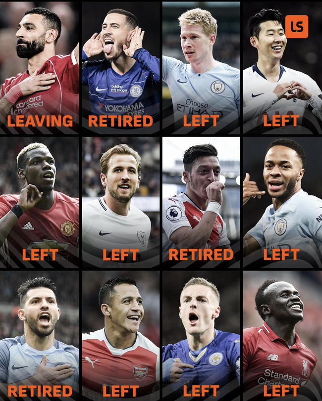 살라의 작별이 발표된 직후, 축구 콘텐츠 매체 ‘라이브 스코어’는 짧고 굵은 한마디를 남겼다. 매체는 26일 살라, 손흥민, 에당 아자르, 더 브라위너, 폴 포그바, 해리 케인, 메수트 외질, 라힘 스털링, 세르히오 아구에로, 알렉시스 산체스, 제이미 바디, 사디오 마네 등 16명의 선수 얼굴이 담긴 사진 한 장을 게재하며 “PL 한 시대가 막을 내리고 있다”고 했다.