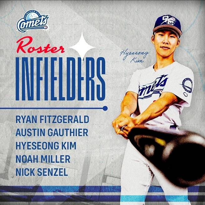 오클라호마시티는 27일(이하 한국시간) 구단 공식 사회관계망서비스(SNS)를 통해 개막 로스터에 관한 내용을 전했다. 투수, 포수, 내야수, 외야수 명단과 함께 간판 선수를 함께 소개했는데, 내야수 간판 선수로 김혜성이 선정돼 눈길을 끌었다.