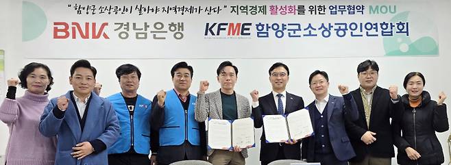 BNK경남은행은 27일 함양지점과 함양군 소상공인연합회가 ‘소상공인 상생금융 업무협약’을 체결했다.
