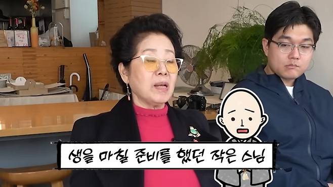 선우용여는 "당시 작은 스님이 암에 걸려 생을 마칠 준비를 하고 계셨는데, 큰 스님이 '네가 먼저 가면 내가 다 좋게 해주겠다'며 위로하셨다"고 회상했다.