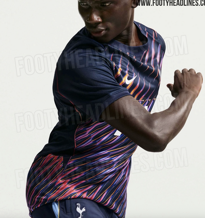 축구용품전문사이트 ‘푸티헤드라인스’는 28일(한국시간) 다음 시즌 토트넘이 입게될 원정 유니폼을 공개했다. 매체는 “토트넘의 2026-27시즌 원정 유니폼 디자인이 파격적이다. 옵시디언(네이비 블루) 바탕에 네온 핑크, 퍼플, 오렌지 색상의 지그재그 사선이 교차하는 패턴이 특징”이라고 알렸다.