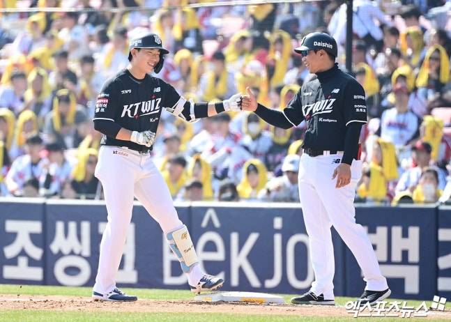 "감독님 감사합니다, 즐기겠습니다" 강백호 이후 8년 만의 KT 고졸 신인 스타팅...데뷔하자마자 2루타→안타 폭발, 스타 탄생 예고 [잠실 현장]