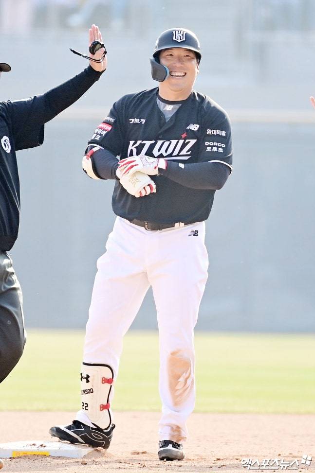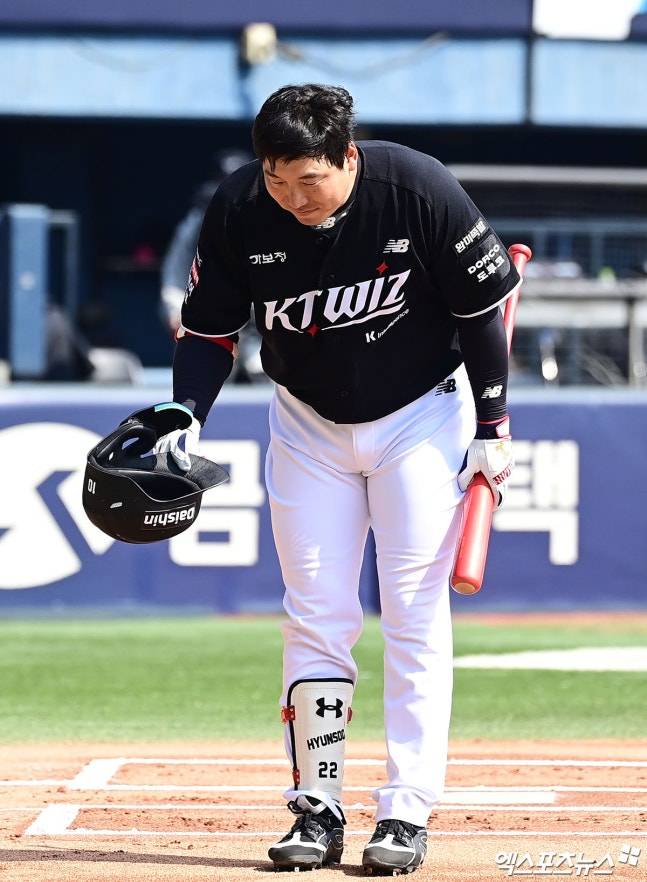 프로 3번째 팀에서 첫 경기를 치르는 김현수(KT 위즈). 전 소속팀을 상대로 이적 첫 안타를 터트렸다.