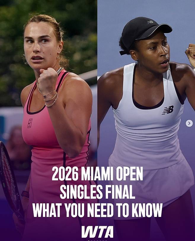 아리나 사발렌카(벨라루스)와 코코 고프(미국)의 마이애미 오픈 결승전은 누가 보더라도 치열한 접전이 예상된다.