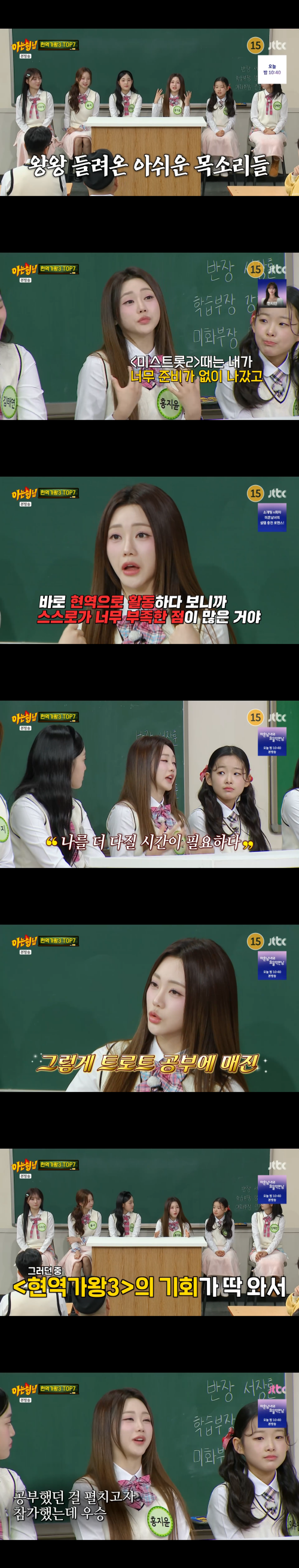이에 이수근은 “현역가왕이 더 치열했지?”라고 물었고, 홍지윤은 “너무 치열했다”고 밝혔다.