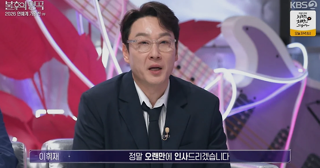 (MHN 김소영 기자) 방송인 이휘재가 '불후의 명곡'을 통해 4년 만에 방송에 복귀하며 그간의 심경을 전했다.