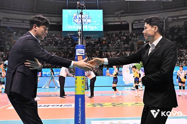 반면 현대건설은 지난 13일 도로공사가 흥국생명을 꺾고 정규리그 1위를 확정하면서 2위가 정해졌기에 GS칼텍스전에 무리할 필요가 없었다. 그래서 주전인 김다인(세터), 양효진, 김희진(미들 블로커), 자스티스, 이예림(아웃사이드 히터), 카리(아포짓 스파이커), 김연견(리베로)까지 모두 뺐다. 지극히 합리적인 운영이었다. 괜히 주전을 뛰게 했다가 다치게 하면 봄 배구라는 대사를 그르칠 수 있기 때문이었다.