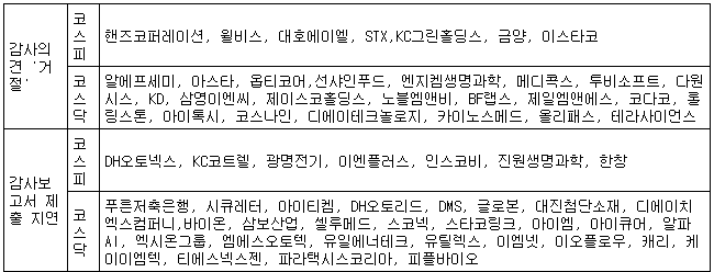 [표] 2025 회계연도 감사의견 '의견거절' 및 감사보고서 제출 지연 기업 현황