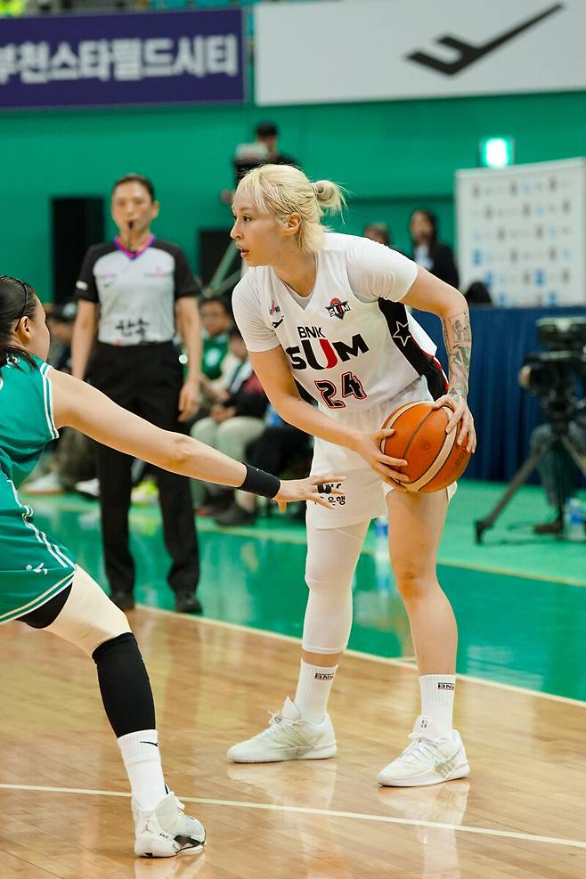 BNK는 지난 시즌의 챔피언이다. 창단 첫 우승에 실패했다. 그러나 핵심 선수이자, 팀 내 최고의 수비수였던 이이지마 사키(173cm, F)가 제도상의 문제로 팀을 떠나게 됐다. 사키의 공백은 매우 컸다. 팀 사정상 스몰 라인업에 대한 의존도가 높은 BNK는 고전했다. 그러면서 중위권 싸움을 이어가고 있는 상황.