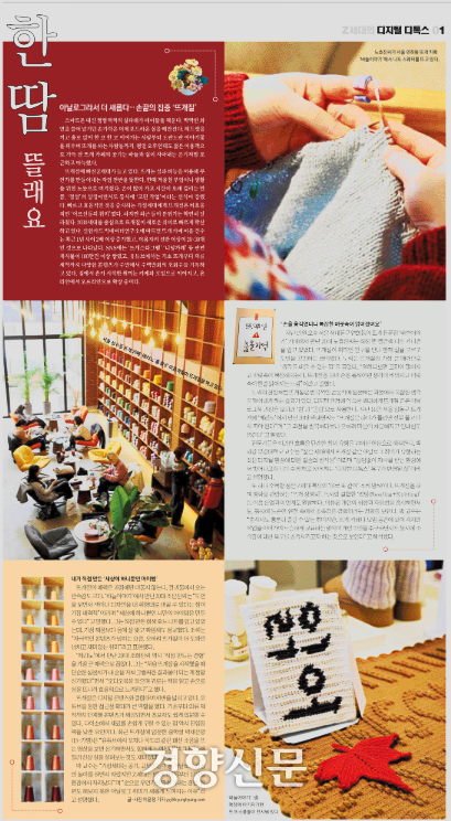 뜨개질에 빠진 Z세대가 늘고 있다. 뜨개는 실과 바늘을 이용해 무언가를 만들어내는 작업 전반을 뜻한다. 한때 겨울철 부업이나 생활을 위한 노동으로 여겨졌다. 손이 많이 가고 시간이 오래 걸리는 만큼, ‘정성’의 상징이면서도 동시에 ‘고된 작업’이라는 인식이 강했다. 빠르고 효율적인 것을 중시하는 기성세대에게 뜨개질은 비효율적인 ‘어르신들의 취미’였다.