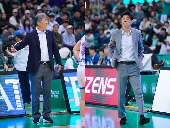 사진 설명 = 왼쪽부터 이상범 하나은행 감독-하상윤 삼성생명 감독