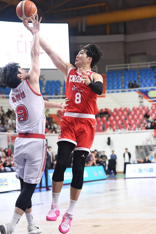 이날 경기 전까지 SK는 2위 안양 정관장에 1.5경기 차 뒤진 3위였다. 2위를 차지해야 4강 플레이오프에 직행하는 만큼, 남은 일정에서 최대한 많은 승리를 거둬야 했다. 경기 전 SK 전희철 감독은 “오늘(28일)부터 2연전이 2위 경쟁에서 분수령이 될 경기다. 내일이 없다 생각하고 경기를 준비했다”라고 이야기했다.