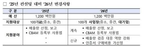 올해는 지원 대상을 대기업까지 확대했다. 중소기업이 나사 등 수출 제품의 배출량을 계산할 때 원자재를 공급하는 대기업의 정확한 데이터가 필요하다는 점을 고려했다. 선정된 100개 사업장에는 총 12억원의 예산을 투입해 전액 무료로 컨설팅을 제공한다. 배출량 산정법과 검증 대응 절차를 안내하고 사업장별 맞춤형 매뉴얼도 배포할 계획이다.