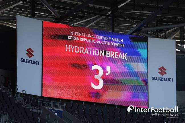 전반 25분 주심이 하이드레이션 브레이크를 선언했다. 하이드레이션 브레이크는 선수들이 전반과 후반 한 차례씩 3분 동안 물을 마시며 짧은 휴식을 취할 수 있는 제도다. 오는 2026 FIFA 북중미 월드컵에서 도입될 예정이다.