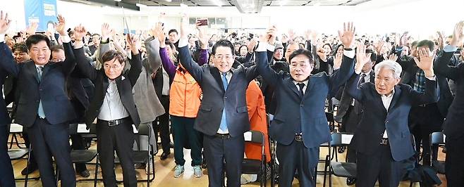 박광태 전 시장은 축사를 통해 "풍부한 행정 경험과 뛰어난 경륜을 가진 김 후보가 당선돼야 전남광주특별시가 서울특별시와 경쟁하며 발전을 이뤄낼 수 있다"고 지지를 호소했다.