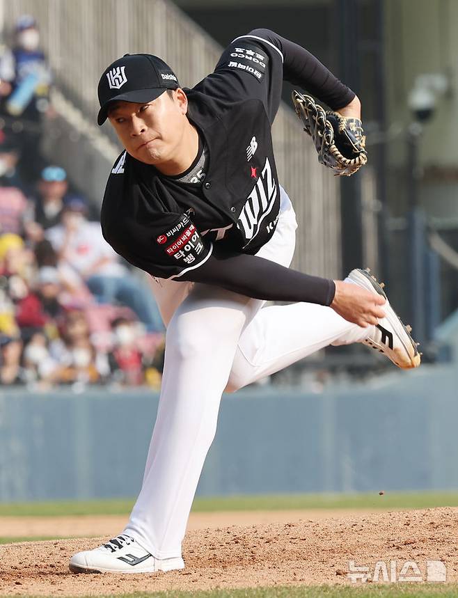[서울=뉴시스] 박주성 기자 = 29일 오후 서울 송파구 잠실야구장에서 열린 2026 신한 SOL KBO리그 KT 위즈와 LG 트윈스의 경기, 7회말 KT 세번째 투수 한승혁이 역투하고 있다. 2026.03.29. park7691@newsis.com