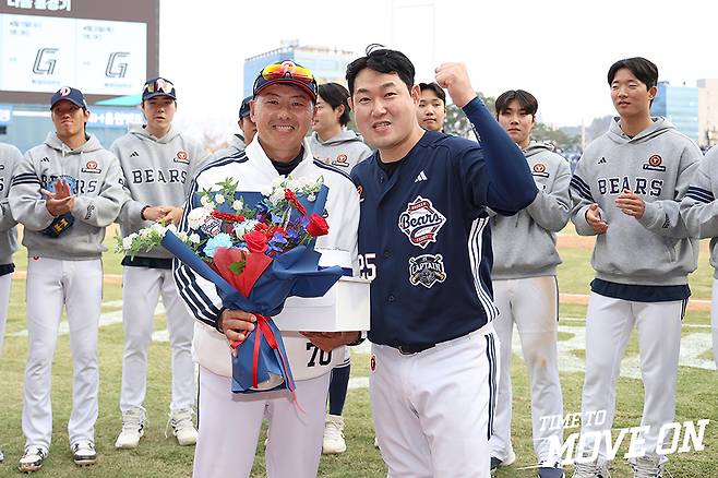 이에 김 감독은 "실책은 페널티 없어"라고 하더니 "나이스 게임"이라며 주먹 인사를 건넸다. 플렉센도 "나이스 게임"이라며 하이파이브를 한 뒤 가던 길을 갔다.
