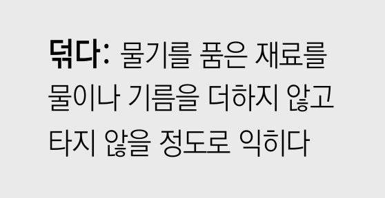 그러면 ‘덖다’와 ‘볶다’는 어떻게 다를까요. ‘볶다’는 기름을 두르거나 마른 상태에서 강한 불로 빠르게 익히는 방식입니다. 콩을 볶거나 멸치를 볶는 것처럼요. 반면 ‘덖다’는 재료 자체에 남아 있는 소량의 물기를 활용하여 타지 않도록 조심스럽게 익히는 것입니다.