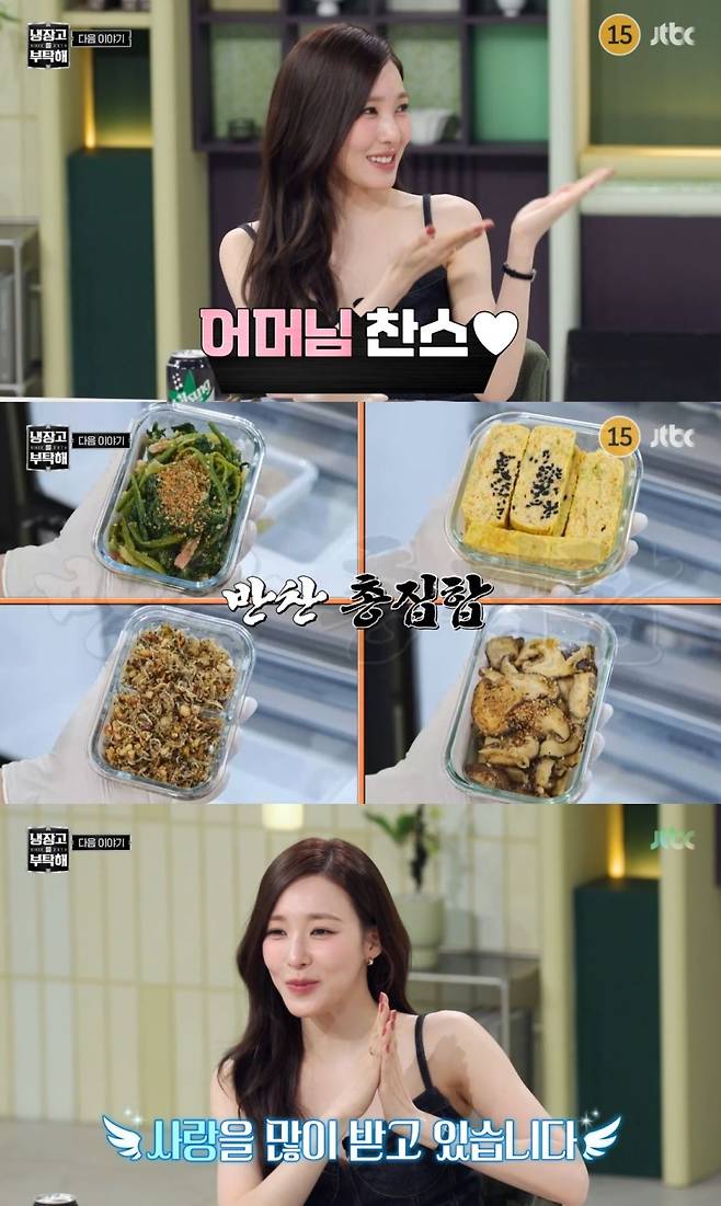 곧이어 티파니의 냉장고가 공개됐다. 계란말이부터 시금치나물, 버섯볶음, 멸치볶음 등 먹음직스러운 밑반찬이 군침을 자극했다.